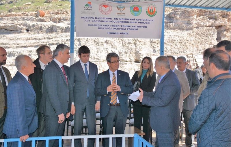 GAP İdaresi Başkanlığı tarafından desteklenen, Bozova Kaymakamlığı ve Bozova İlçe Tarım ve Orman Müdürlüğü tarafından; balıkçıların av araçlarının modernizasyonun sağlanması ve ortak çalışma kültürünün oluşturulması amacıyla uygulanan “Bozova İlçesi Su Ürünleri Avcılığının Alt Yapısının Güçlendirilmesi Projesi” kapsamında ‘Balıkçılara Fiber Tekne ve Motor Desteği Dağıtım Töreni’ gerçekleştirildi.