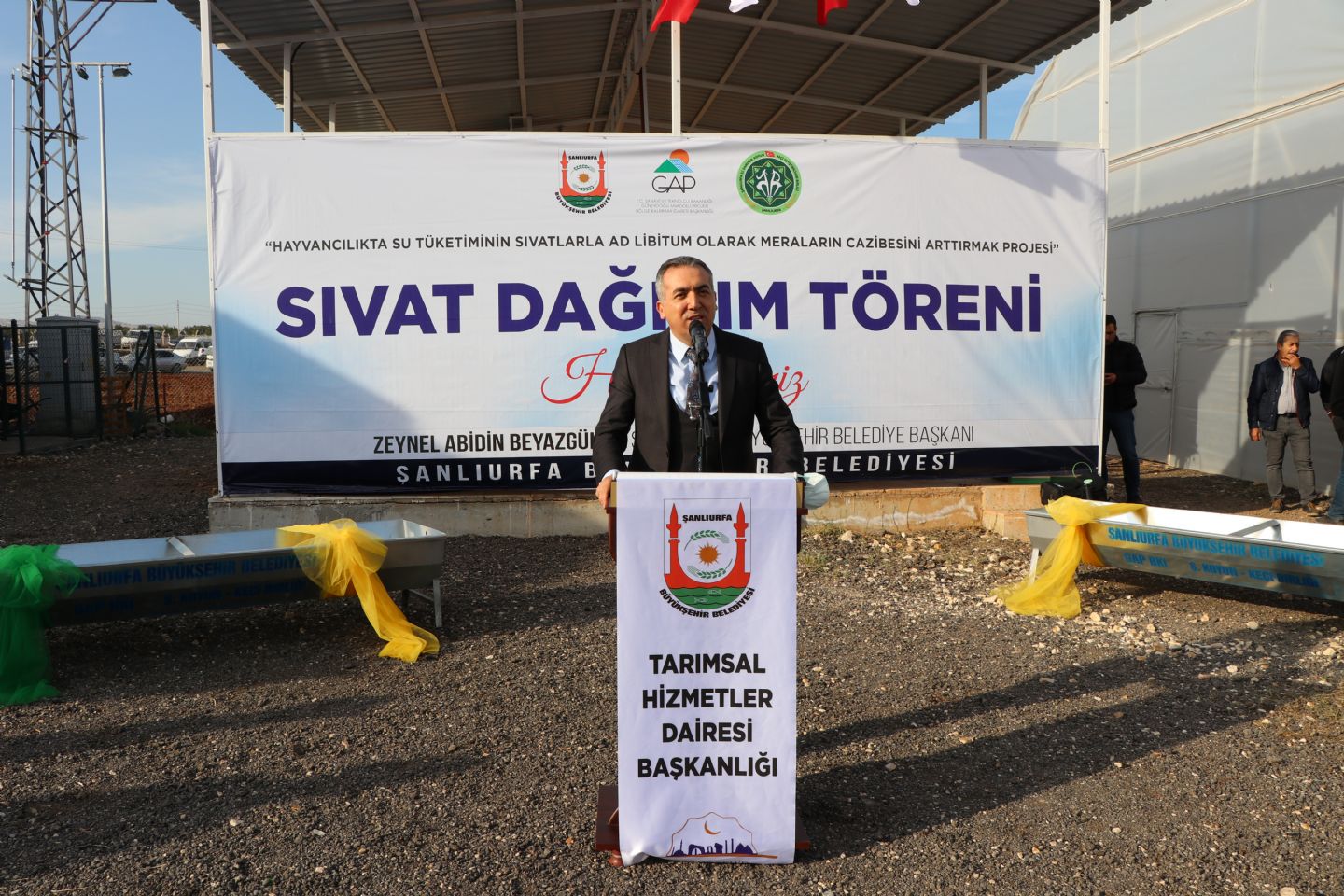 GAP İdaresi Başkanlığı, Şanlıurfa Büyükşehir Belediyesi Başkanlığı ve Şanlıurfa Damızlık Koyun Keçi Yetiştiricileri Birliği iş birliğiyle "Hayvancılıkta Su Tüketiminin Sıvatlarla Ad Libitum Olarak Meraların Cazibesini Artırmak Projesi" kapsamında düzenlenen Sıvat Dağıtım Töreni, Şanlıurfa Hassas Tarım Merkezinde gerçekleştirildi. Törene; Şanlıurfa Büyükşehir Belediye Başkanı Zeynel Abidin BEYAZGÜL, Haliliye Kaymakamı Metin ESEN, GAP İdaresi Başkan Yardımcısı Doç. Dr. Nusret MUTLU, Şanlıurfa Damızlık Koyun Keçi Yetiştiricileri Birlik Başkanı Hasan EYYÜPOĞLU ile ilgili kurum ve kuruluşların temsilcileri ve çok sayıda çiftçi katıldı.