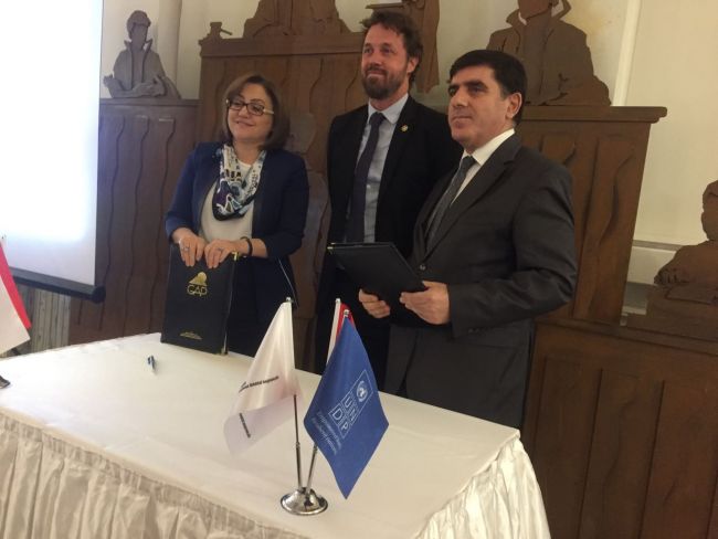 23 Kasım 2016 Çarşamba günü GAP BKİ Başkanı Sadrettin Karahocagil, Başkan Yardımcısı Mehmet Açıkgöz, UNDP Türkiye Direktörü Claudio Tomasi ve beraberindeki heyet, Şanlıurfa Büyükşehir Belediyesi’ni ziyaret etti. Büyükşehir Belediyesi Genel Sekreteri Abdulkadir Açar ve üst düzey belediye yöneticileri tarafından ağırlanan heyet, “Belediye İhtiyaçları ve Önceliklendirilmesi” çalışmasının sunumu, karşılıklı görüş alışverişinde bulunma ve işbirliği protokolünün imzalanması amacıyla toplantı salonunda bir araya geldi. GAP BKİ Başkanı Sadrettin Karahocagil, Şanlıurfa Büyükşehir Belediyesi Genel Sekreteri Abdulkadir Açar’ın ve UNDP Türkiye Direktörü Claudio Tomasi’nin açılış konuşması yaptığı toplantıda, yapılan sunum ve karşılıklı fikir alışverişi sonrasında, Japon Hükümeti tarafından finanse edilen, UNDP ve GAP BKİ işbirliği ile yürütülen Güneydoğu Anadolu Bölgesi’nde Sosyal İstikrarın Güçlendirilmesi Projesi kapsamında Şanlıurfa Büyükşehir Belediyesi için gerçekleştirilecek belediye yatırımları için karşılıklı sorumluluk ve yükümlülüklerin belirlendiği işbirliği protokolü Genel Sekreter Abdulkadir AÇAR ve GAP BKİ Başkanı Sadrettin Karahocagil tarafından imzalandı.
