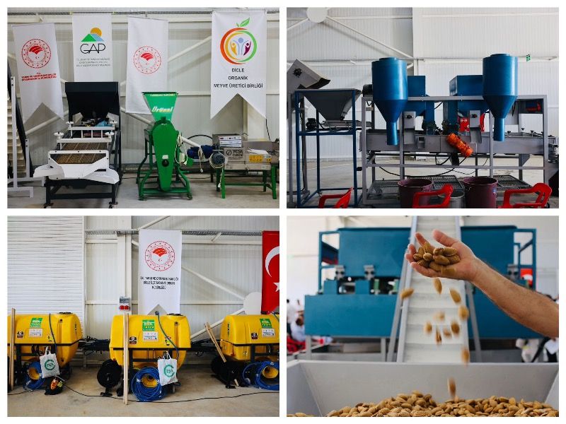 Açılışın ardından GAP İdaresi tarafından desteklenen, Dicle Kaymakamlığı tarafından yürütülen “Organik Meyve Bahçelerinin Modernizasyonu Projesi” kapsamında 77 üreticiye; 600 litre kapasiteli asılır tip tarla pulvarizatörü, 17 HP benzinli 3 vites çapa makinesi, 400 litre gübre atma makinesi, saatte 250 kilogram badem soyabilen badem soyma makinesi ve saatte 250 kilogram üzüm sıkabilen meyve sıkma makinesi dağıtımı yapıldı.