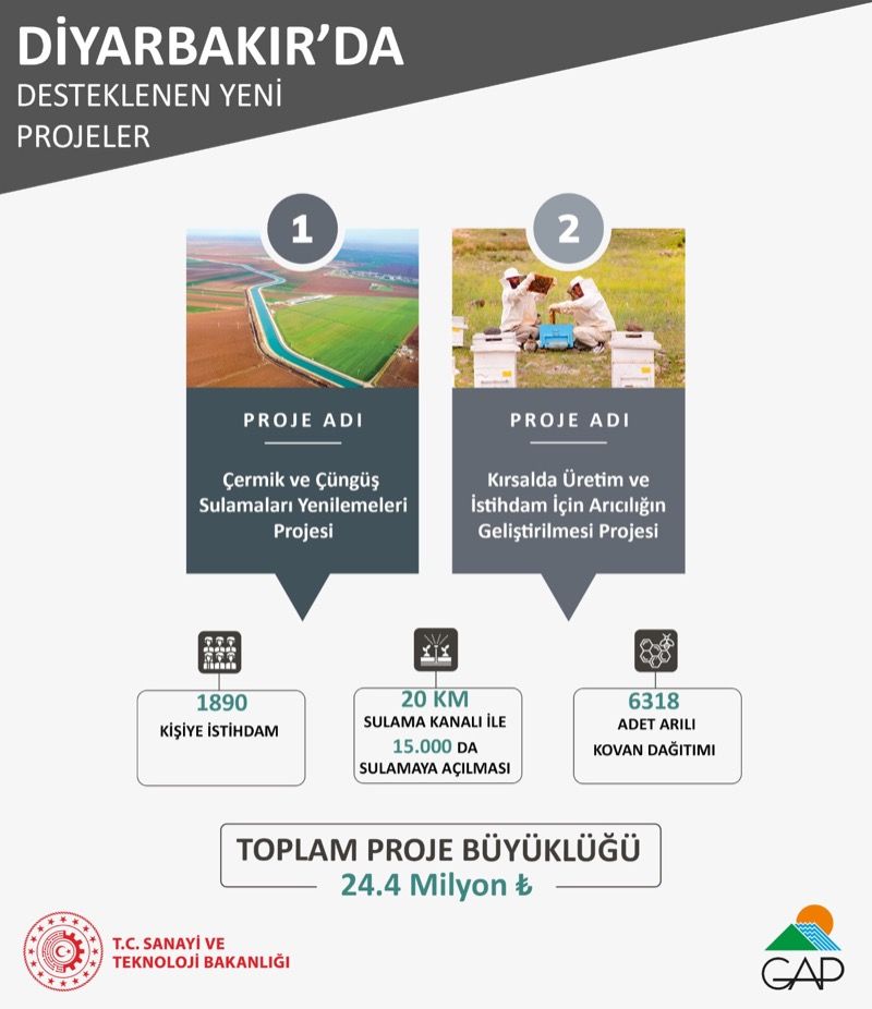 T.C Sanayi ve Teknoloji Bakanlığı GAP Bölge Kalkınma İdaresi Başkanlığı tarafından, 2022 yılında Diyarbakır’da desteklenecek 24.4 Milyon TL bütçeli 2 projeye ilişkin protokol imza töreni, uygulayıcı kuruluşların da katılımıyla 15 Aralık 2022 tarihinde Diyarbakır Büyükşehir Belediyesinde gerçekleştirildi.