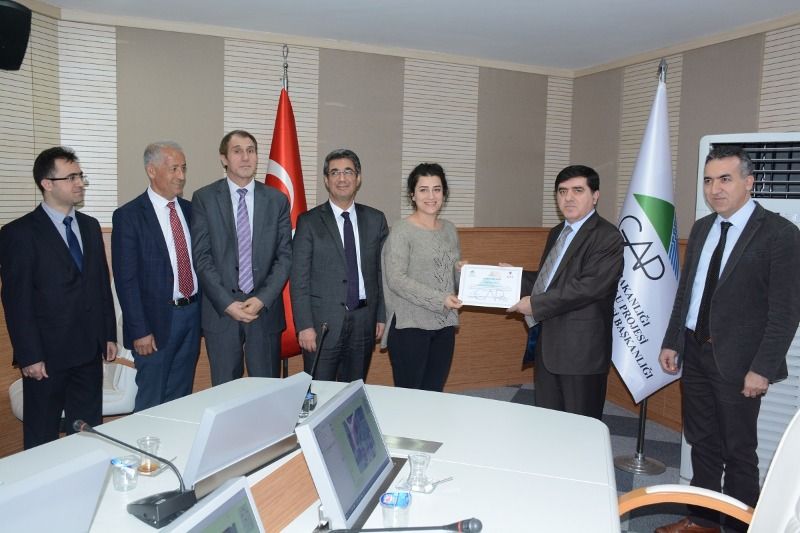 İlgili kurum ve kuruluşların temsilcilerinin katılımı ile GAP İdaresi Başkanlığı toplantı salonunda gerçekleştirilen eğitim sonucunda; GAP İdaresi Başkanı, Başkan Yardımcısı ve yöneticileri tarafından katılımcılara belgeleri verilmiştir.
