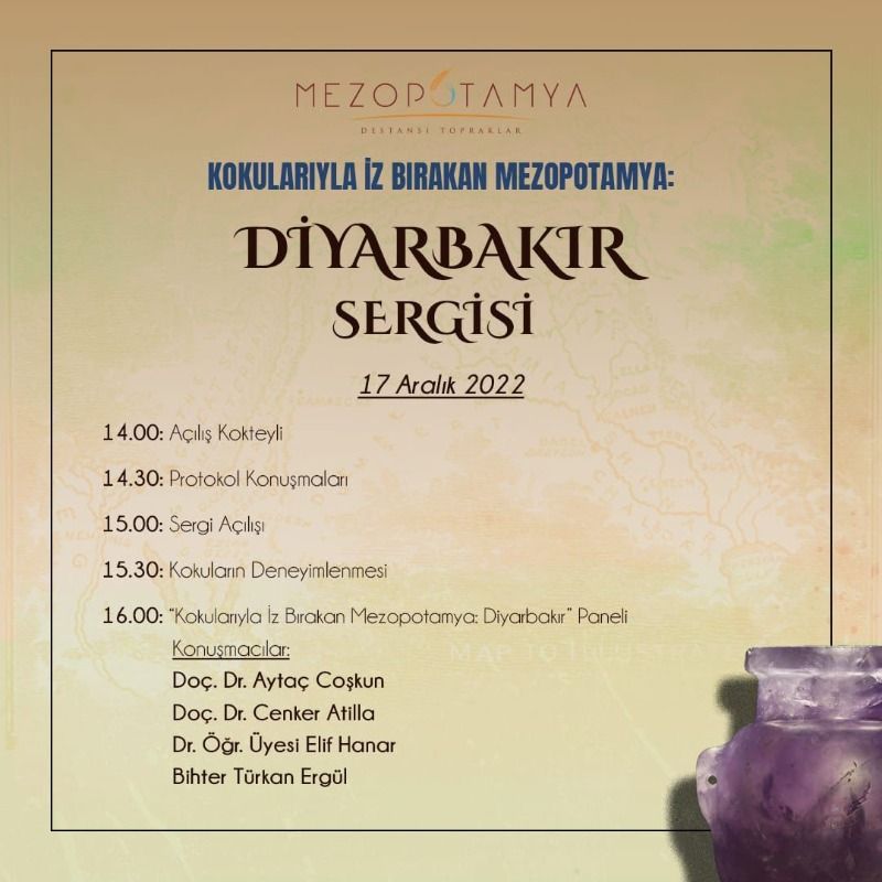 Sergi ve sergi kapsamında düzenlenecek olan “Kokularıyla İz Bırakan Mezopotamya Diyarbakır” Paneli ile Mezopotamya topraklarında yetişen koku kültürünü tanıtmak, bölgede yaşamış uygarlıkların koku deneyimlerini anlatmak, bölgenin sahip olduğu endemik bitki türlerinin kokularının tarihsel süreçte tütsü ve parfüme dönüşümünü çok özel deneyimler eşliğinde dünya platformuna taşımak amaçlanıyor.