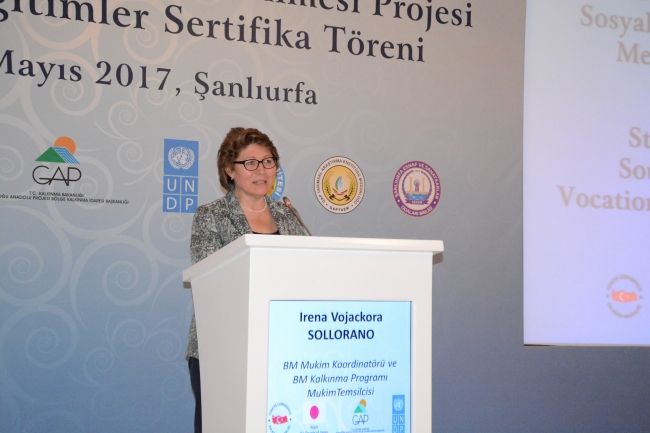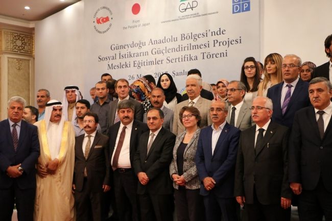 Hizmet, sanayi ve tarım sektörlerindeki kurslarını tamamlayan Suriyelilerin ve ev sahibi topluluk üyelerinin başarılarının takdir edildiği mesleki eğitim sertifikasyon töreni GAP Bölge Kalkınma İdaresi Başkanlığı ve UNDP tarafından 26 Mayıs'ta Şanlıurfa'da düzenlendi. Mesleki eğitimler programı, GAP BKİ ve UNDP tarafından uygulanan ve Japonya Hükümeti tarafından finanse edilen Güneydoğu Anadolu’da Sosyal İstikrarı Güçlendirme Projesi’nin “İstihdam ve Geçim Kaynakları Fırsatları” bileşeni kapsamında gerçekleştiriliyor.