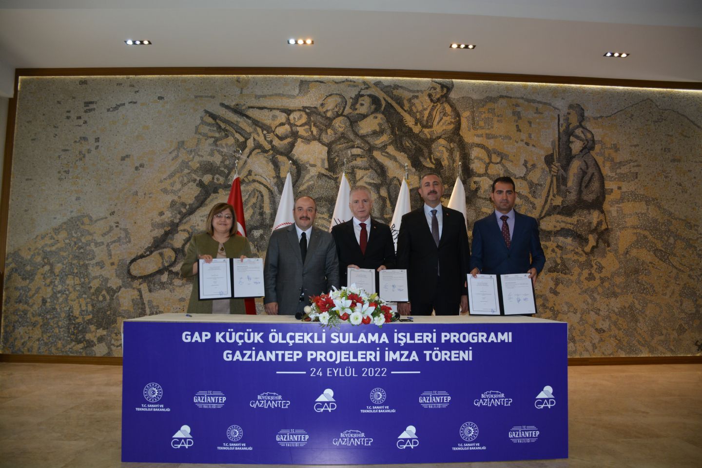 GAP Bölge Kalkınma İdaresi Başkanlığınca desteklenecek, Gaziantep Valiliği ve Gaziantep Büyükşehir Belediyesi iş birliği ile uygulanacak olan, Küçük Ölçekli Sulama İşleri Programı (GAP KÖSİP) kapsamında 60 Milyon TL destekli sulama projelerine ilişkin resmi açılışı ve protokol imza töreni, 24 Eylül 2022 tarihinde Sanayi ve Teknoloji Bakanı Sayın Mustafa VARANK'ın katılımlarıyla Gaziantep’te gerçekleştirildi.