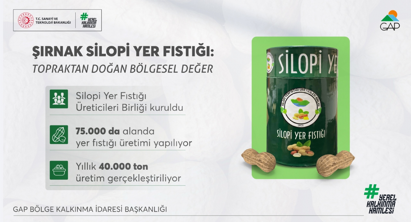 GAP İdaresi desteğiyle, Silopi İlçe Tarım ve Orman Müdürlüğü tarafından yürütülen Silopi Yer Fıstığı Markalaşıyor Projesi ile modern yöntemler kullanılarak üretilen yer fıstığında katma değer artıyor.